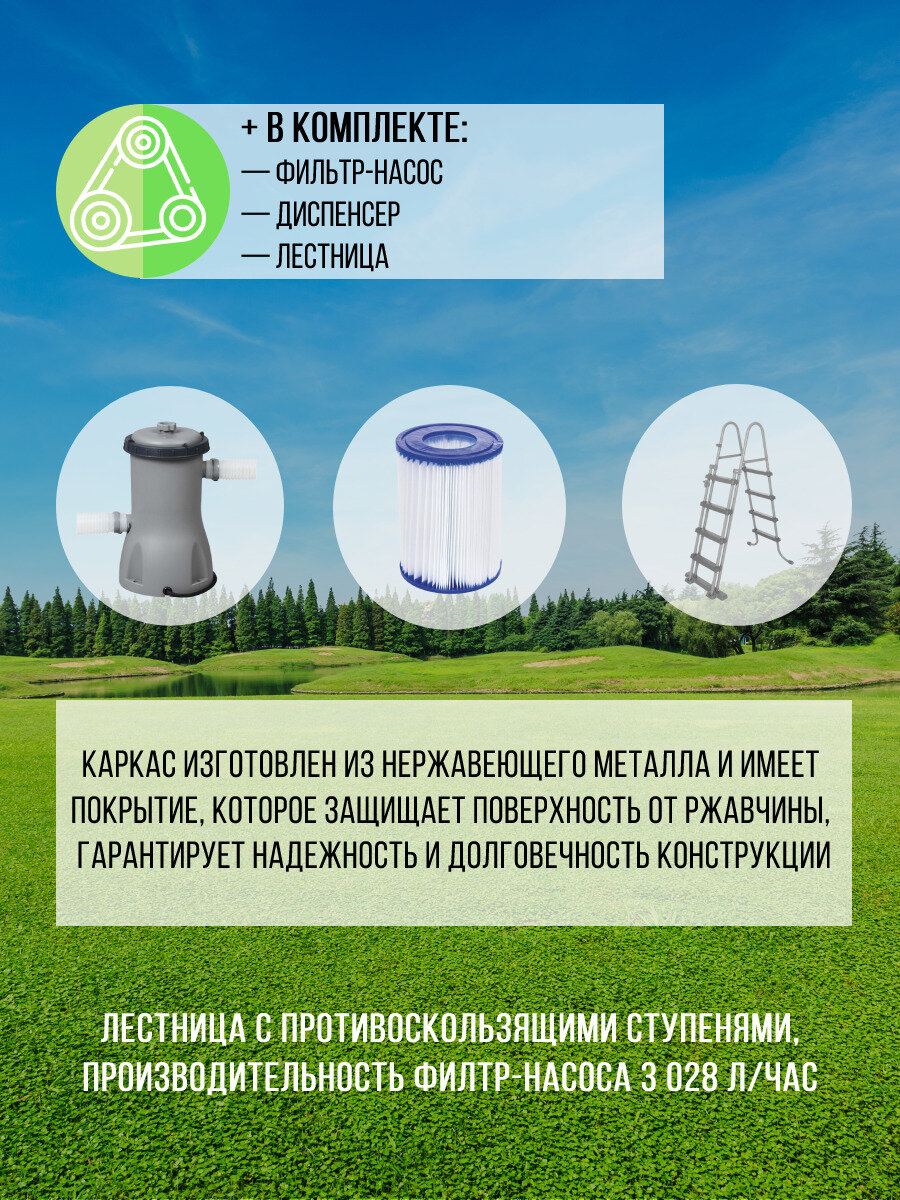 BESTWAY Бассейн каркасный, фильтр-насос, лестница, чехол, диспенсер, 457x107см, 56488