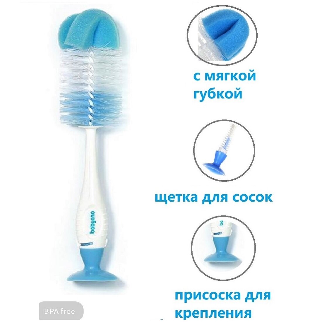 BabyOno Ершик для бутылочек на присоске