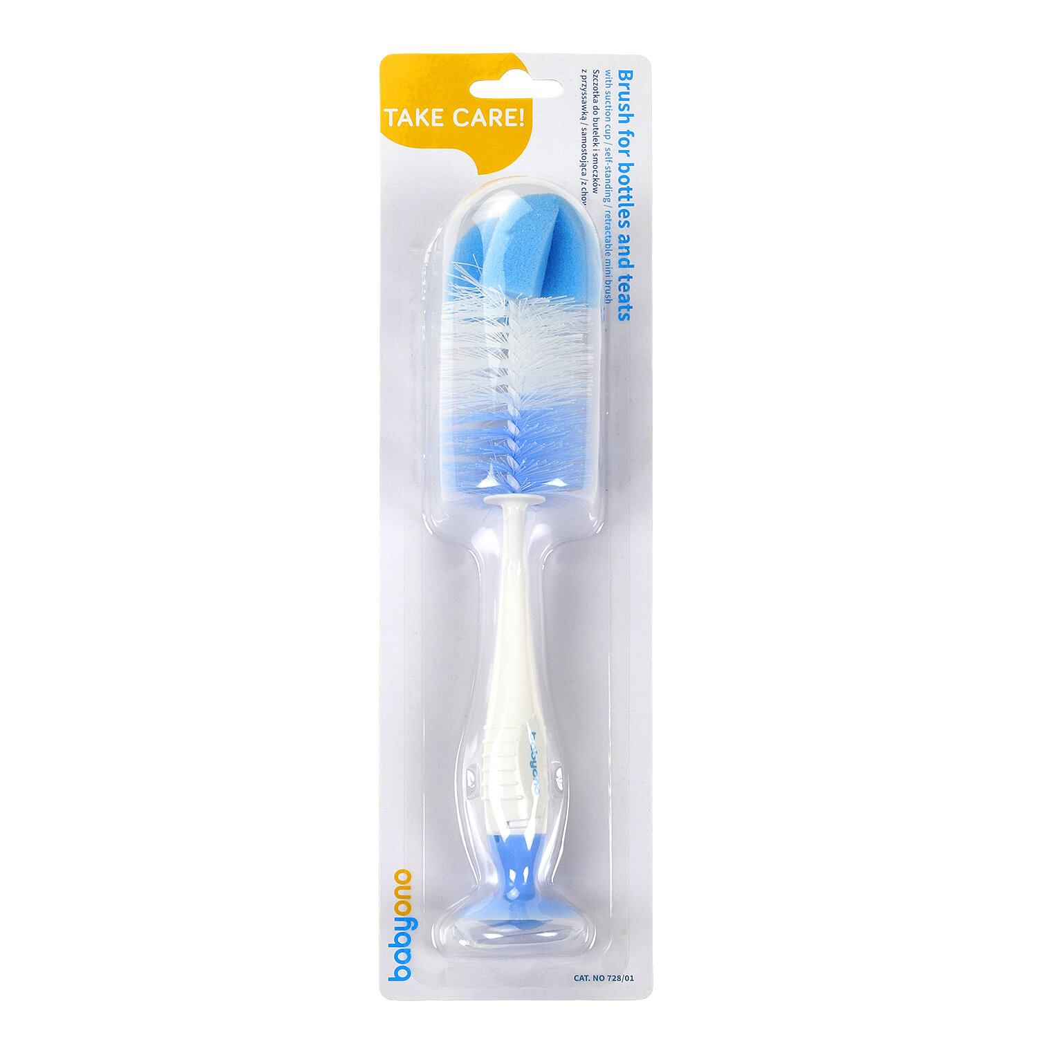 BabyOno Ершик для бутылочек с присоской голубой