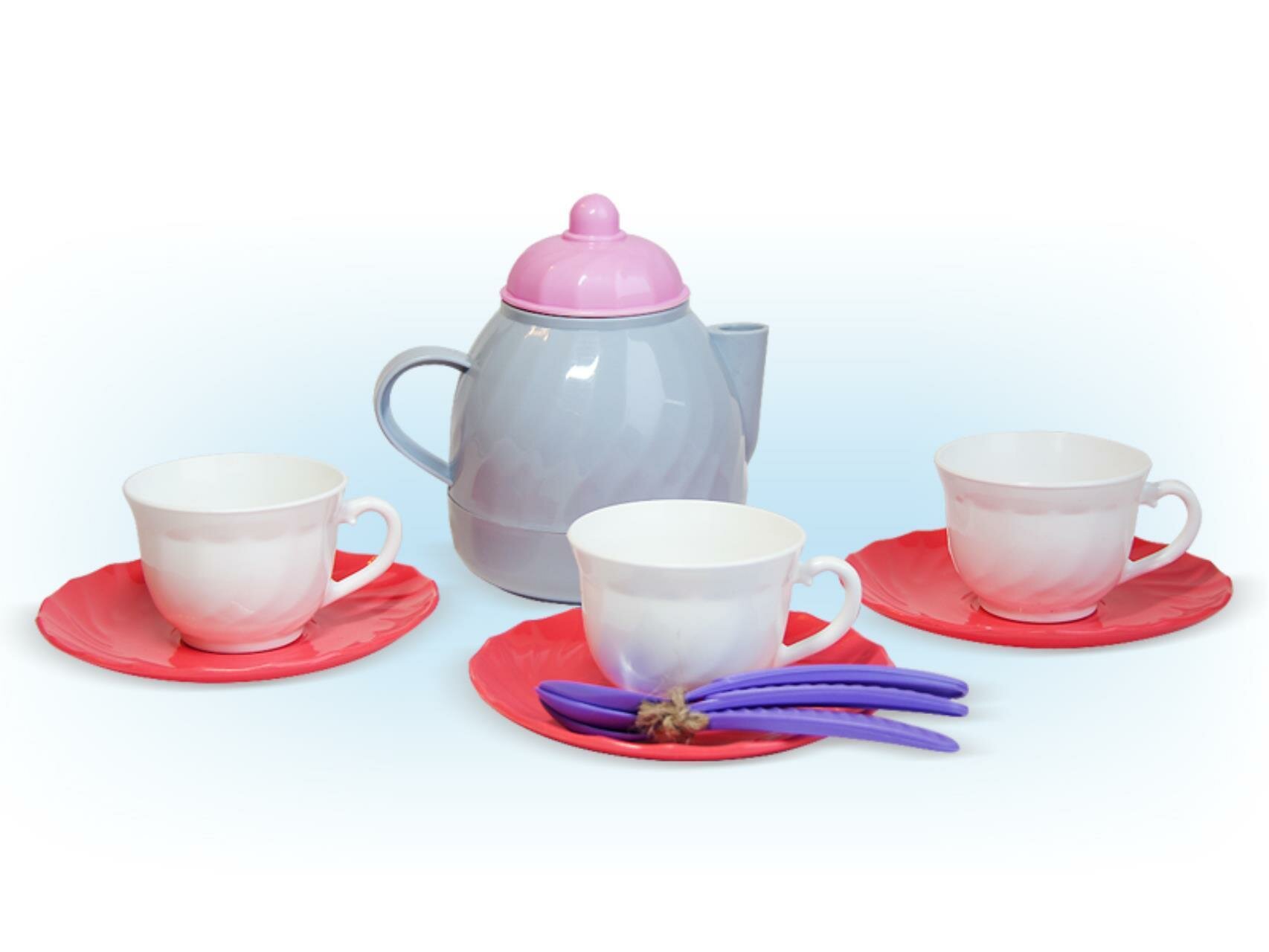 Чайный набор вполне хороший. Чашки, блюдца, ложки вполне пригодны для своего назначения. Ребёнок доволен и с большой охотой играет. Недостатки: А вот с "чайником" есть проблема. Чайник он напоминает с трудом, однако дело на в этом |