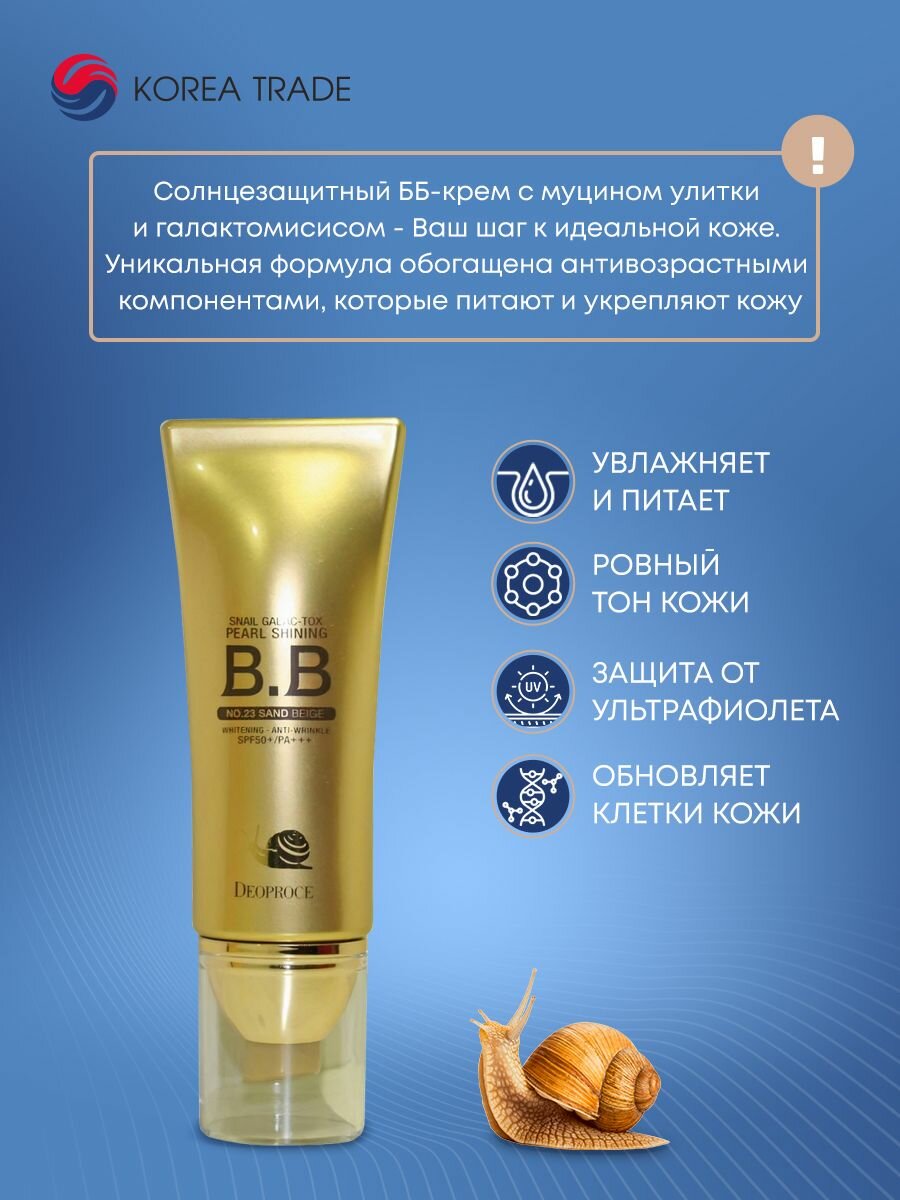 Купить DEOPROCE SNAIL GALAC PEARL SHINING BB NO.23 Антивозрастной ББ крем с муцином улитки и галактомисисом