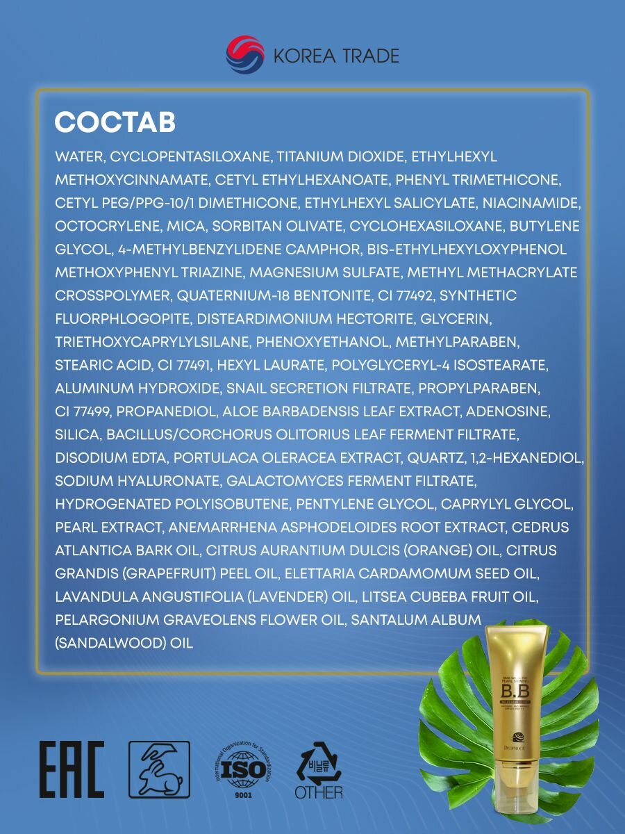 "Жемчужное сияние" - многофункциональный ВВ-крем DEOPROCE с жемчугом, тон 21, 40 грамм