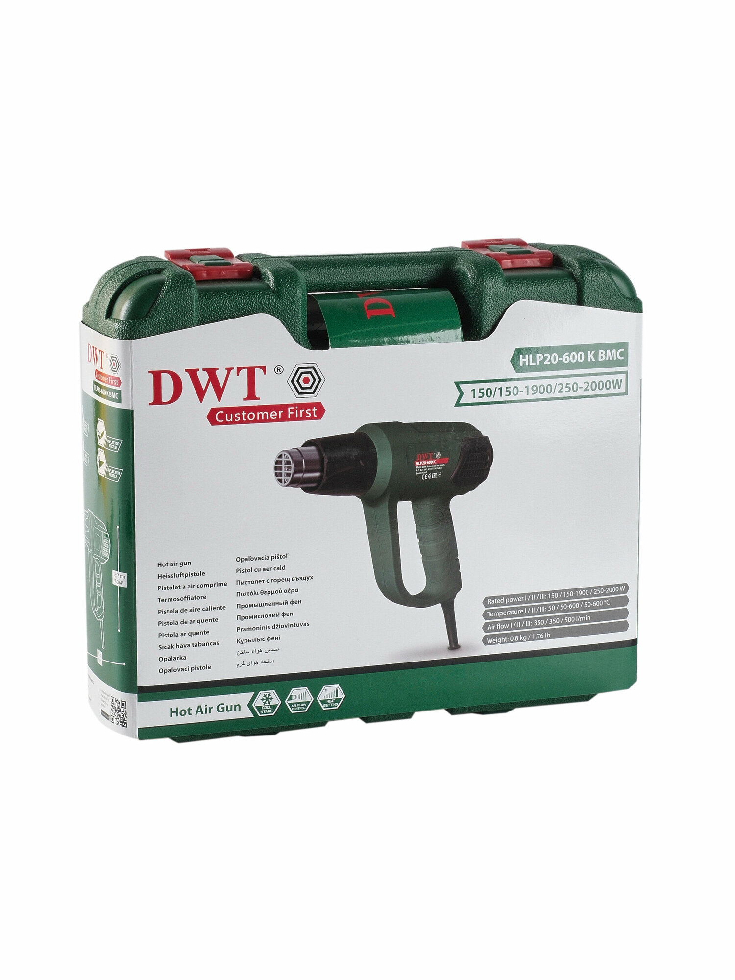Строительный фен DWT HLP20-600 K BMC Case, 2000 Вт зелeный