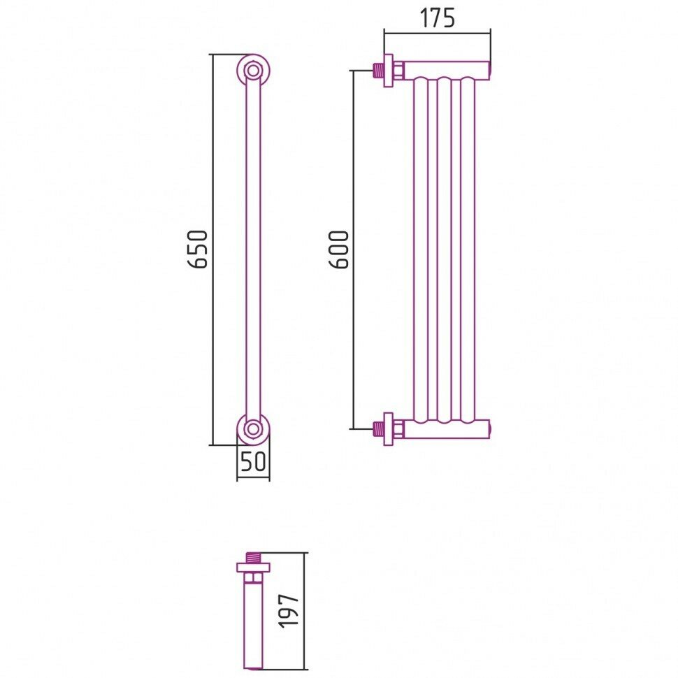 Полотенцесушитель водяной 600х195 подключение горизонтальное/вертикальное Сунержа Хорда 00-0124-0600
