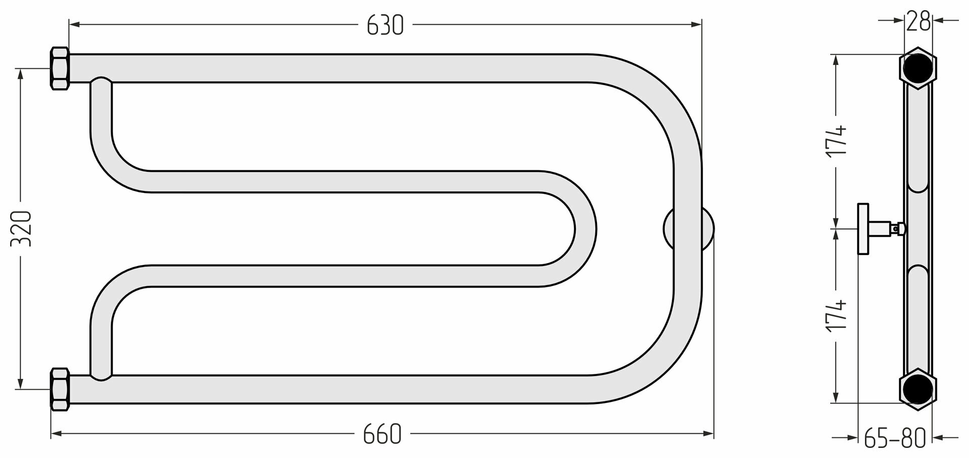 Сунержа Водяной полотенцесушитель Сунержа Гусли 320х650
