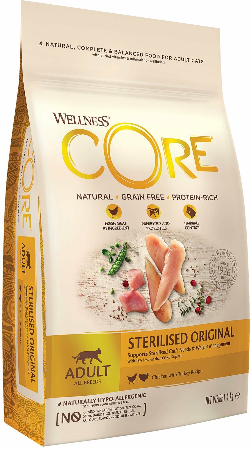 Купить Сухой корм для стерилизованных взрослых кошек Wellness CORE Original, с курицей и индейкой 4 кг