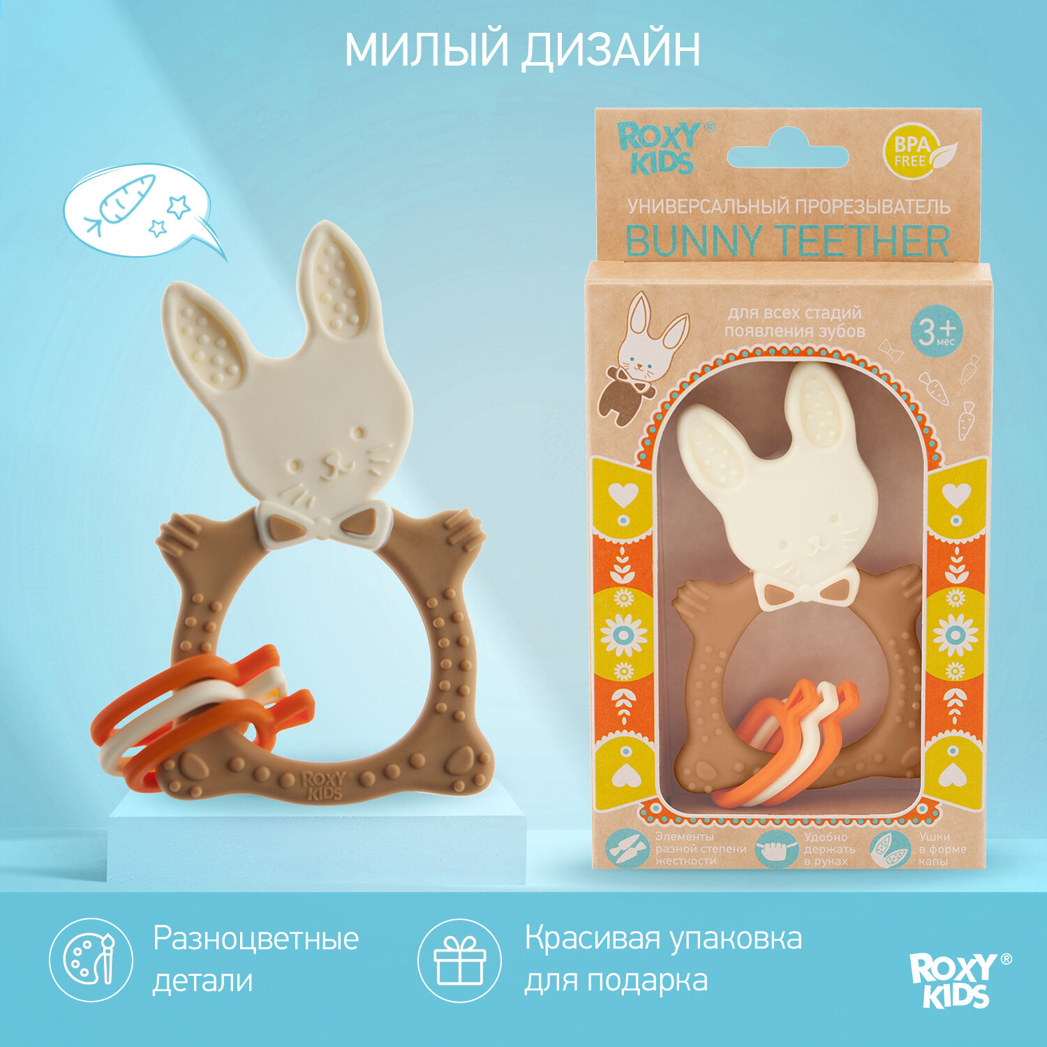Универсальный прорезыватель BUNNY от ROXY-KIDS . Цвет коричневый.
