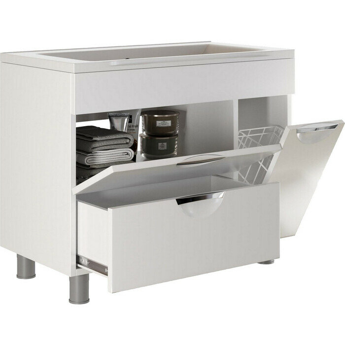 -криво собрана, чтобы нормально открывалась, пришлось всю заново разобрать и собрать - раковина чуть шире тубмы, щель снизу - внутренний выдвижной отсек царапает руки при открытии и выемке принадлежностей - детали для крепления были положены в пакет от продуктов |