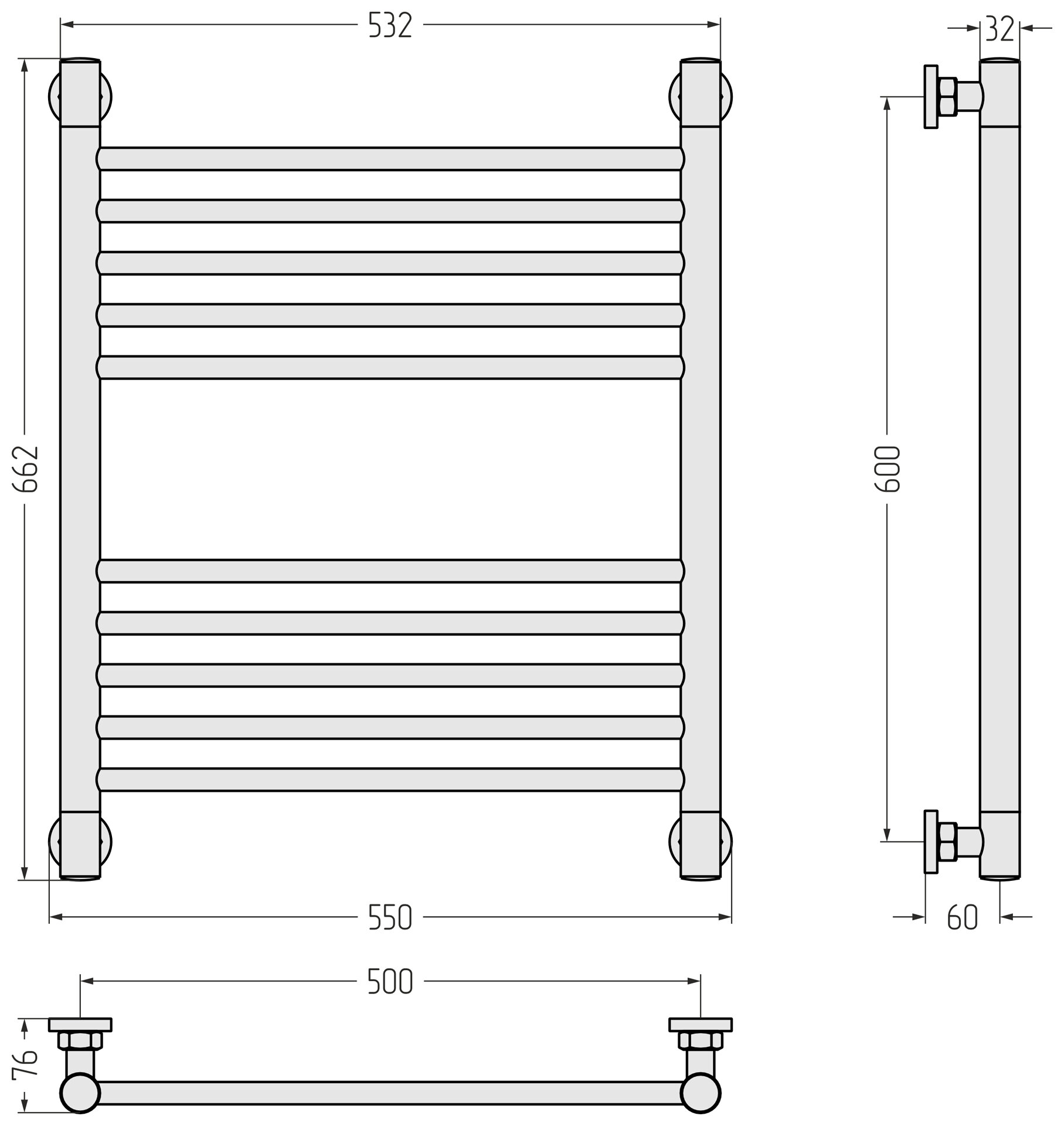 Полотенцесушитель водяной Сунержа Богема+ 60x50, прямая 00-0220-6050