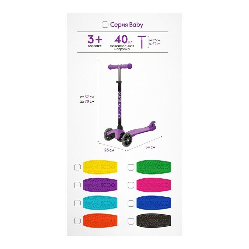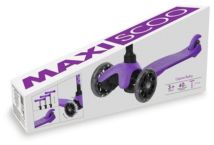 Самокат Maxiscoo Baby 3Х Колесный, Свет.Колеса 2021, Цвет фиолетовый
