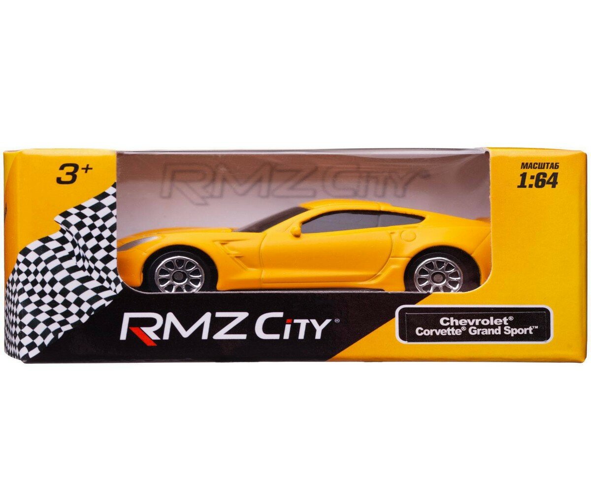 Купить Машинка металлическая Uni-Fortune RMZ City 1:64 Chevrolet Corvette, без механизмов, цвет желтый матовый, 9 x 4.2 x 4 см