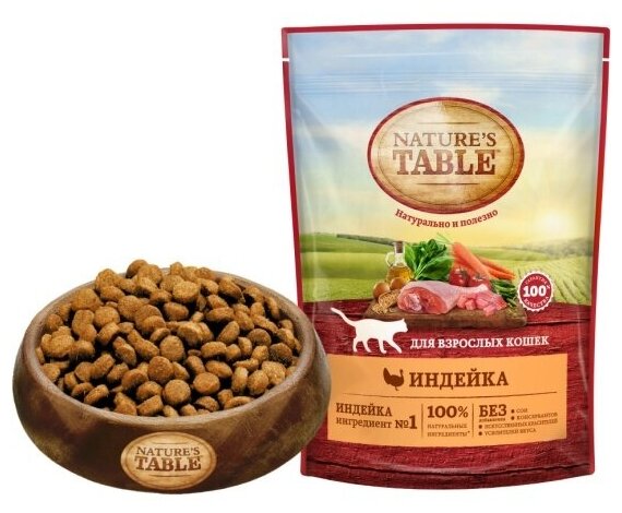 Natures Table Сухой корм Nature’s Table для взрослых кошек, Индейка, 1,1кг 10225521, 1,1 кг