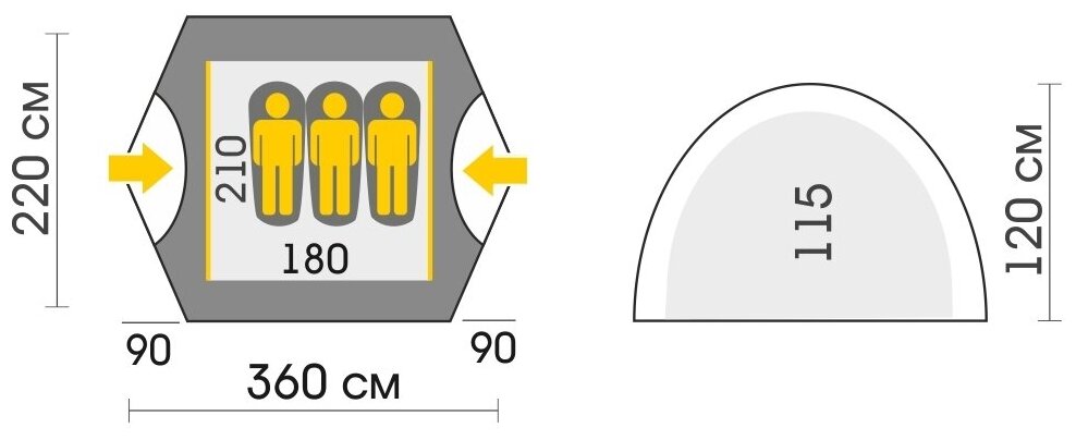| Длина внешней палатки | 360 см |