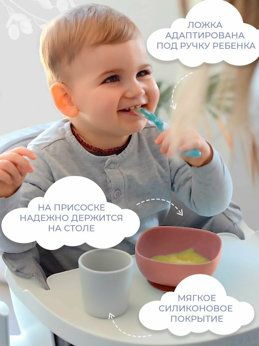 Набор силиконовой детской посуды BEABA: 2 тарелки на присоске, стакан силиконовый, ложка детская для кормления и прикорма