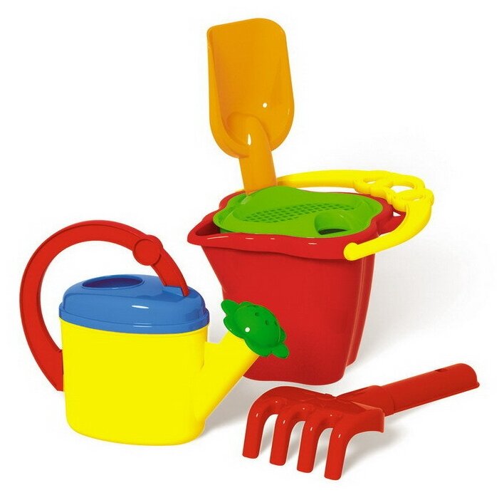 Песочный набор № 118 (ведро 0,6 л, сито, грабли 19 см, совок 19 см, лейка 0,3 л)
