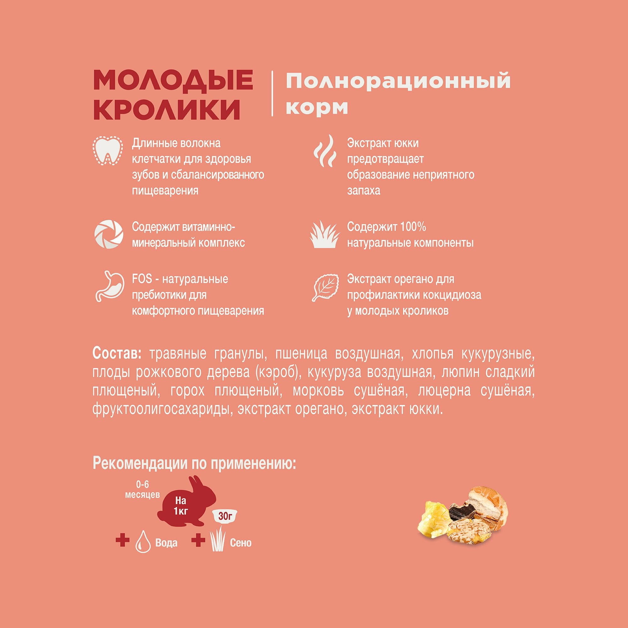 Сухой корм для кроликов молодых / смесь кормовая зерновая для грызунов little one 400г х 2 упаковки