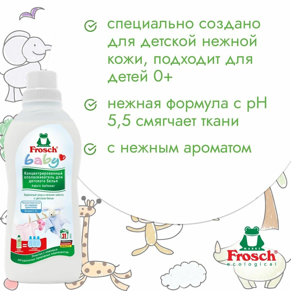 СохранитьFrosch Концентрированный ополаскиватель для детского белья 750 мл интересное: