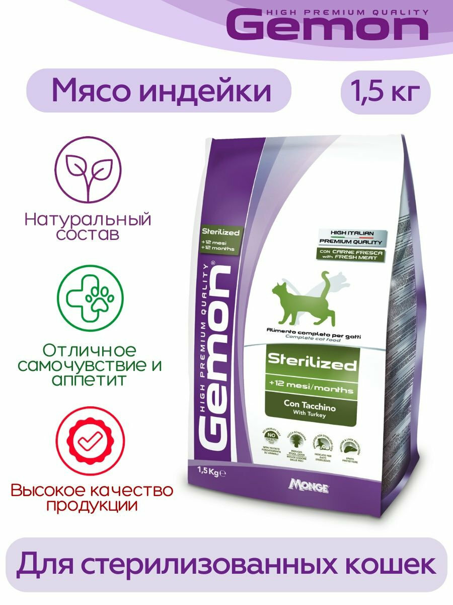 Gemon корм для взрослых стерилизованных кошек всех пород, индейка 1,5 кг