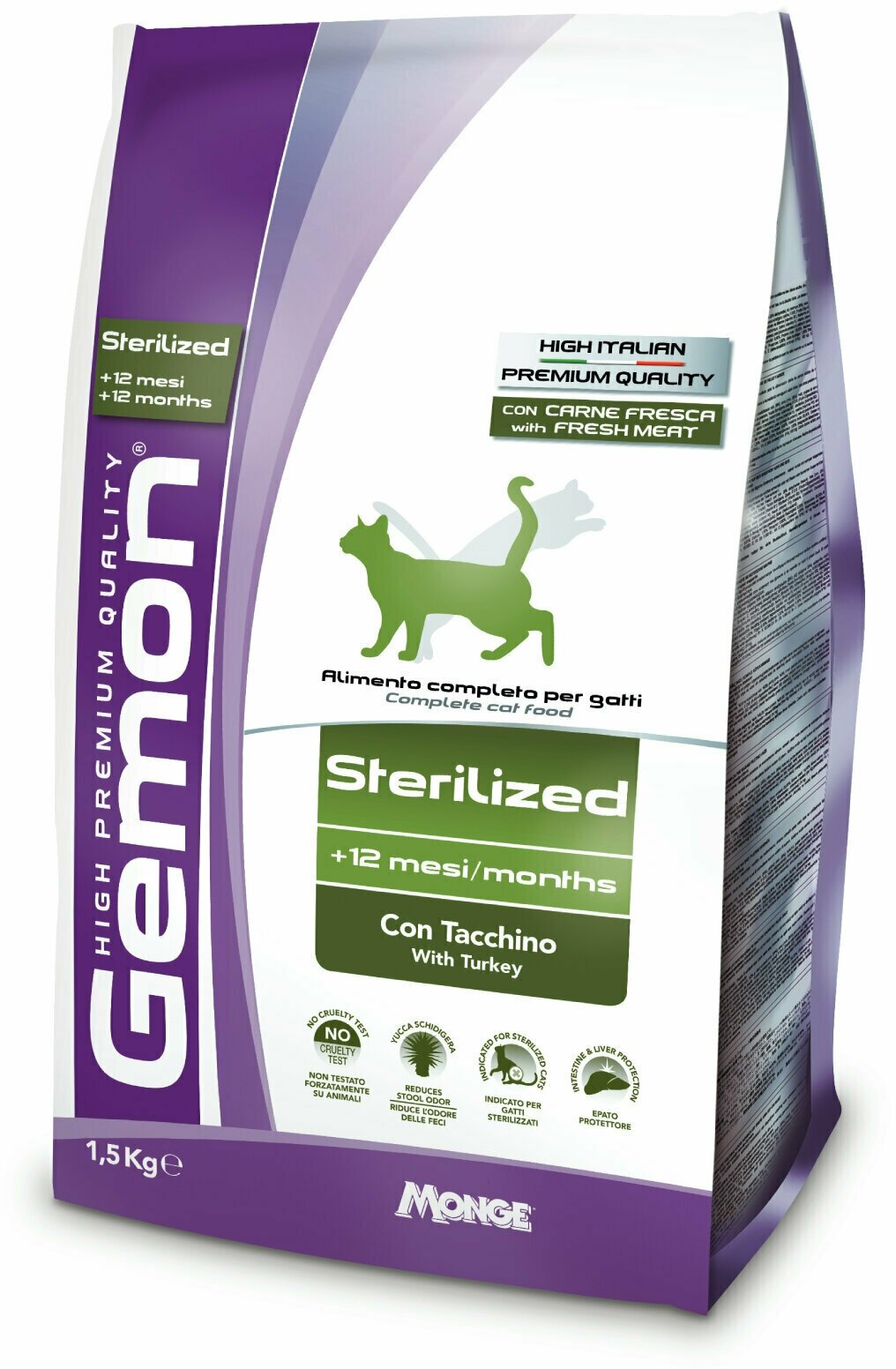 GEMON CAT STERILISED для взрослых кастрированных котов и стерилизованных кошек с индейкой (1,5 кг)