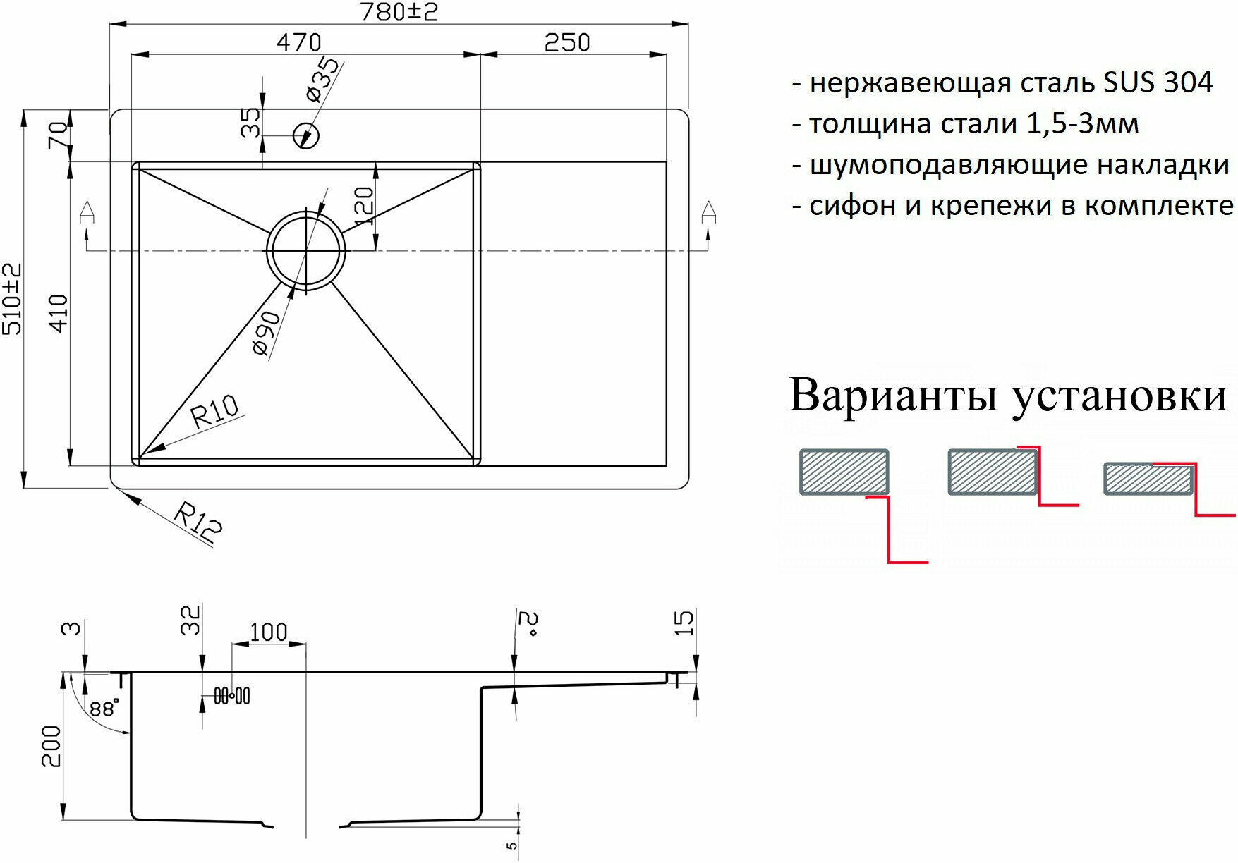 | Установка | врезная |