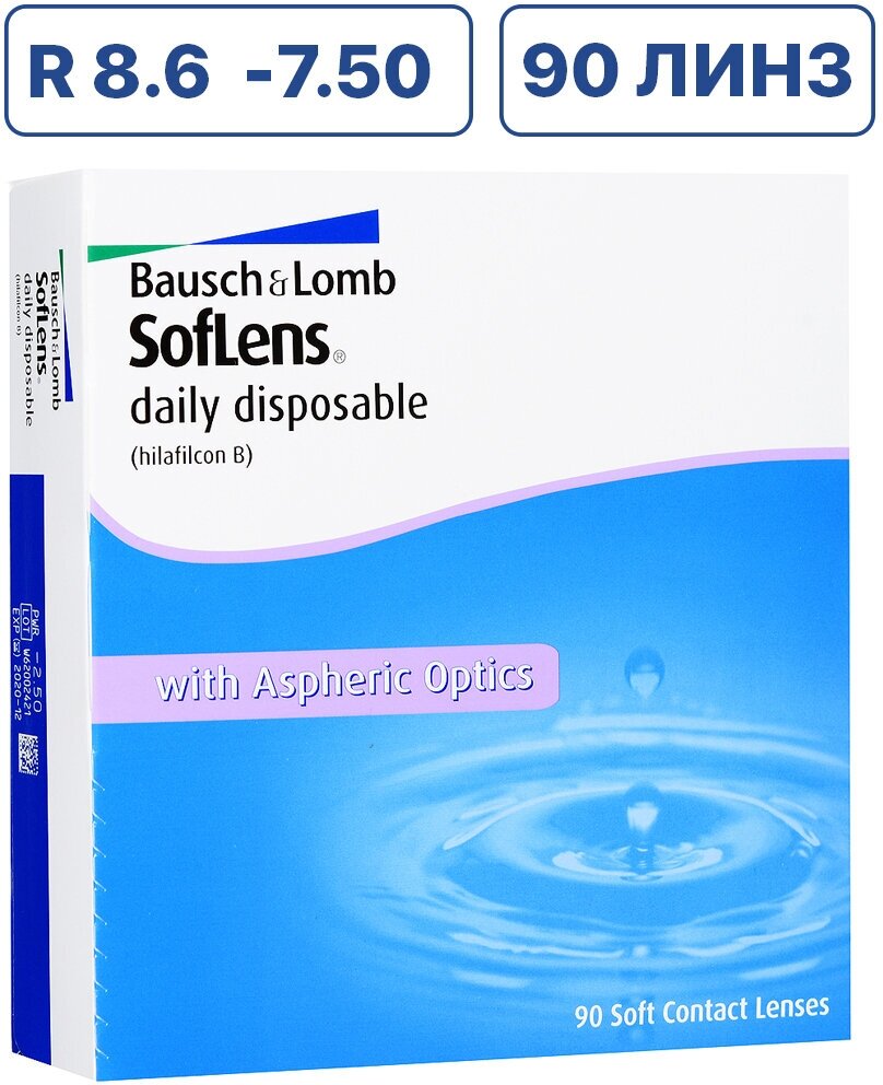 Однодневные контактные линзы Bausch&Lomb SofLens Daily Disposable 90 pk (BC 8.6; D -7.50)
