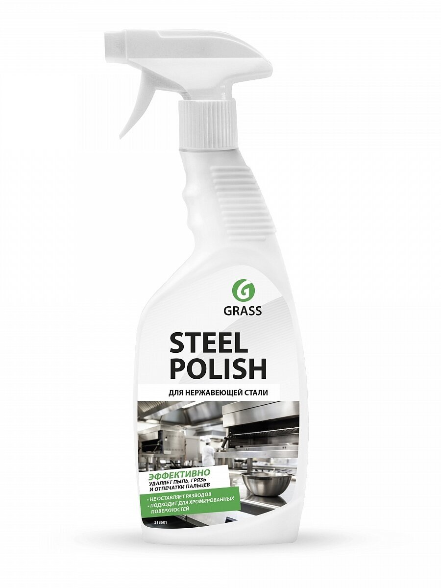 Чистящее средство для кухни Steel Polish 600мл для очистки изделий из нержавеющей стали, курок Grass арт.218601