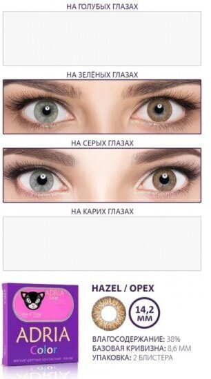 Контактные линзы цветные ADRIA, Adria Color 2T, Квартальные, HAZEL, -2,00 / 14,2 / 8,6 / 2 шт.