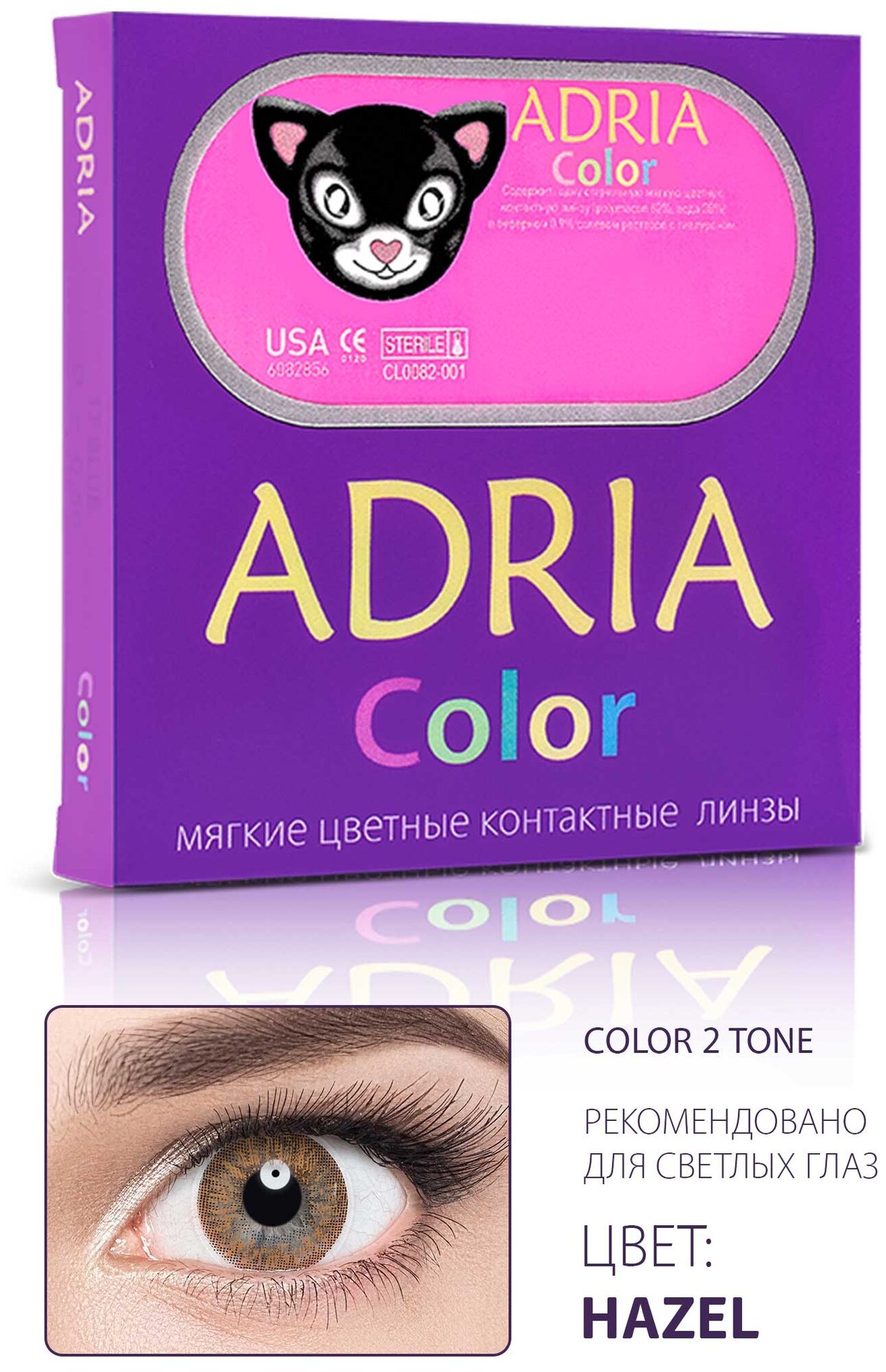 Контактные линзы цветные ADRIA, Adria Color 2T, Квартальные, HAZEL, -2,50 / 14,2 / 8,6 / 2 шт.