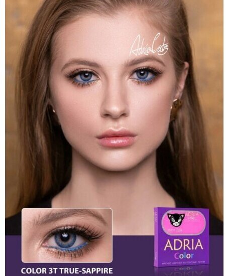Контактные линзы цветные ADRIA, Adria Color 3T, Квартальные, TRUE SAPPHIRE, -3,00 / 14,2 / 8,6 / 2 шт.