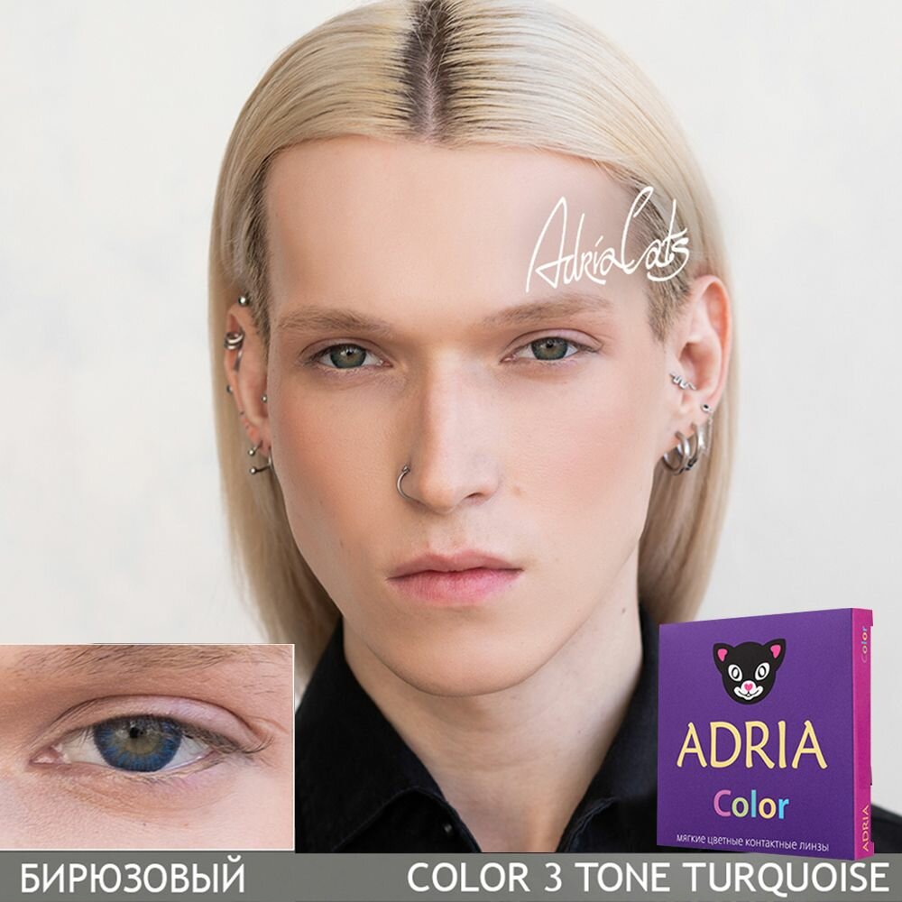 Контактные линзы цветные ADRIA, Adria Color 3T, Квартальные, TURQUOISE, -0,00 / 14,2 / 8,6 / 2 шт.