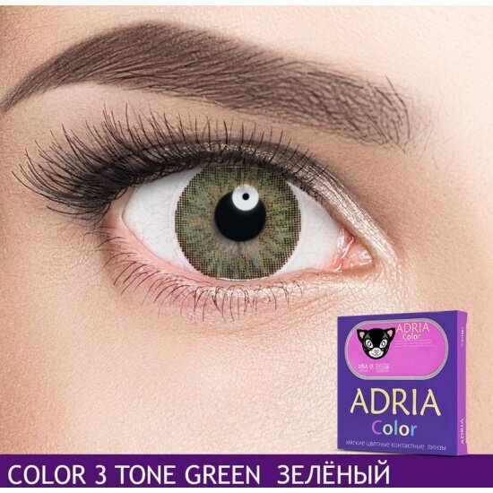 Контактные линзы цветные ADRIA, Adria Color 3T, Квартальные, GREEN, -7,50 / 14,2 / 8,6 / 2 шт.