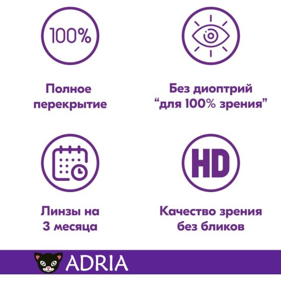 Контактные линзы цветные ADRIA, Adria Neon, Квартальные, VIOLET, -0,00 / 14 / 8,6 / 2 шт.