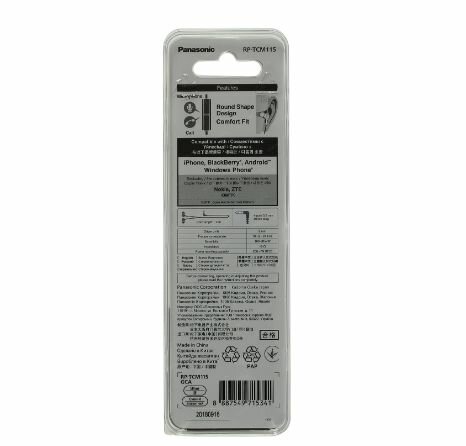 Наушники вкладыши с микрофоном Panasonic RP-TCM115GCK, мобильная гарнитура, черная