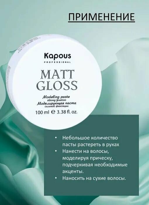 Kapous Professional Паста для волос Matte Gloss, моделирующая, сильная фиксация, 100 мл