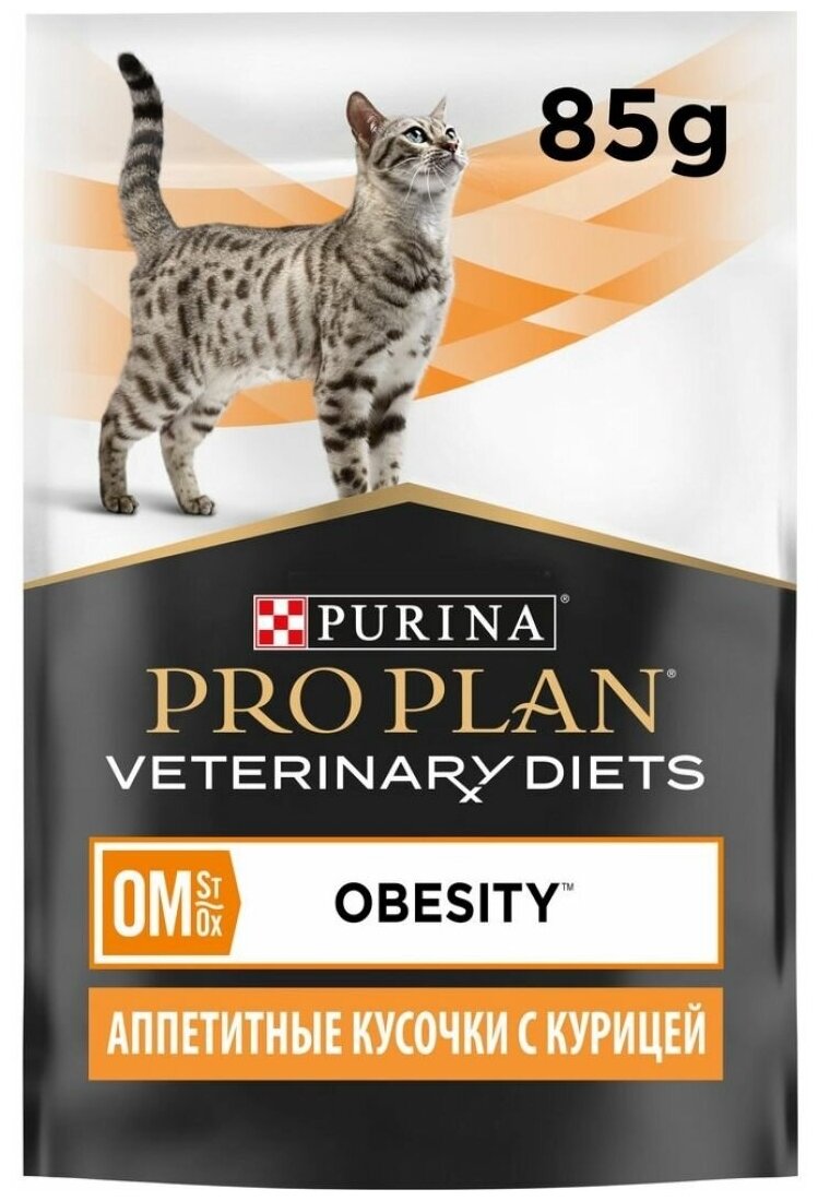 PRO PLAN VETERINARY DIETS OM ST/OX OBESITY для взрослых кошек при ожирении с курицей пауч (85 гр х 10 шт)