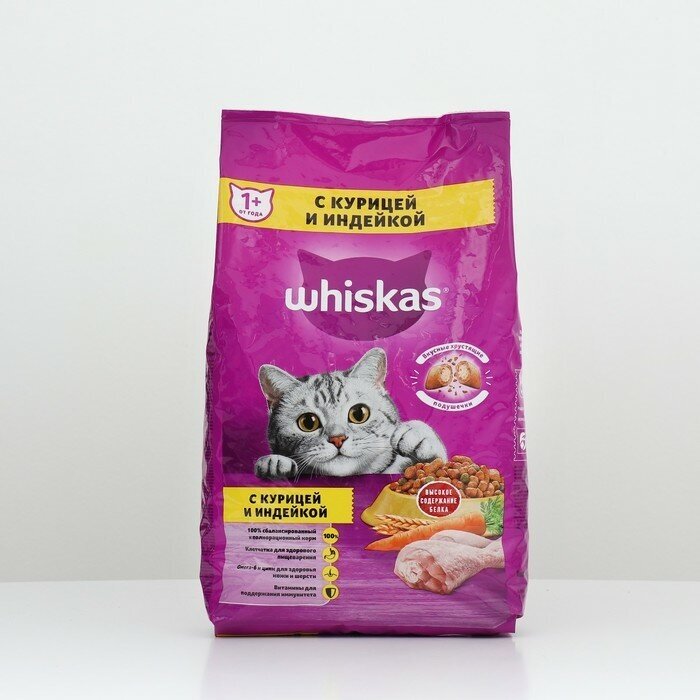 Сухой корм Whiskas для кошек, курица/индейка, подушечки, 350 г