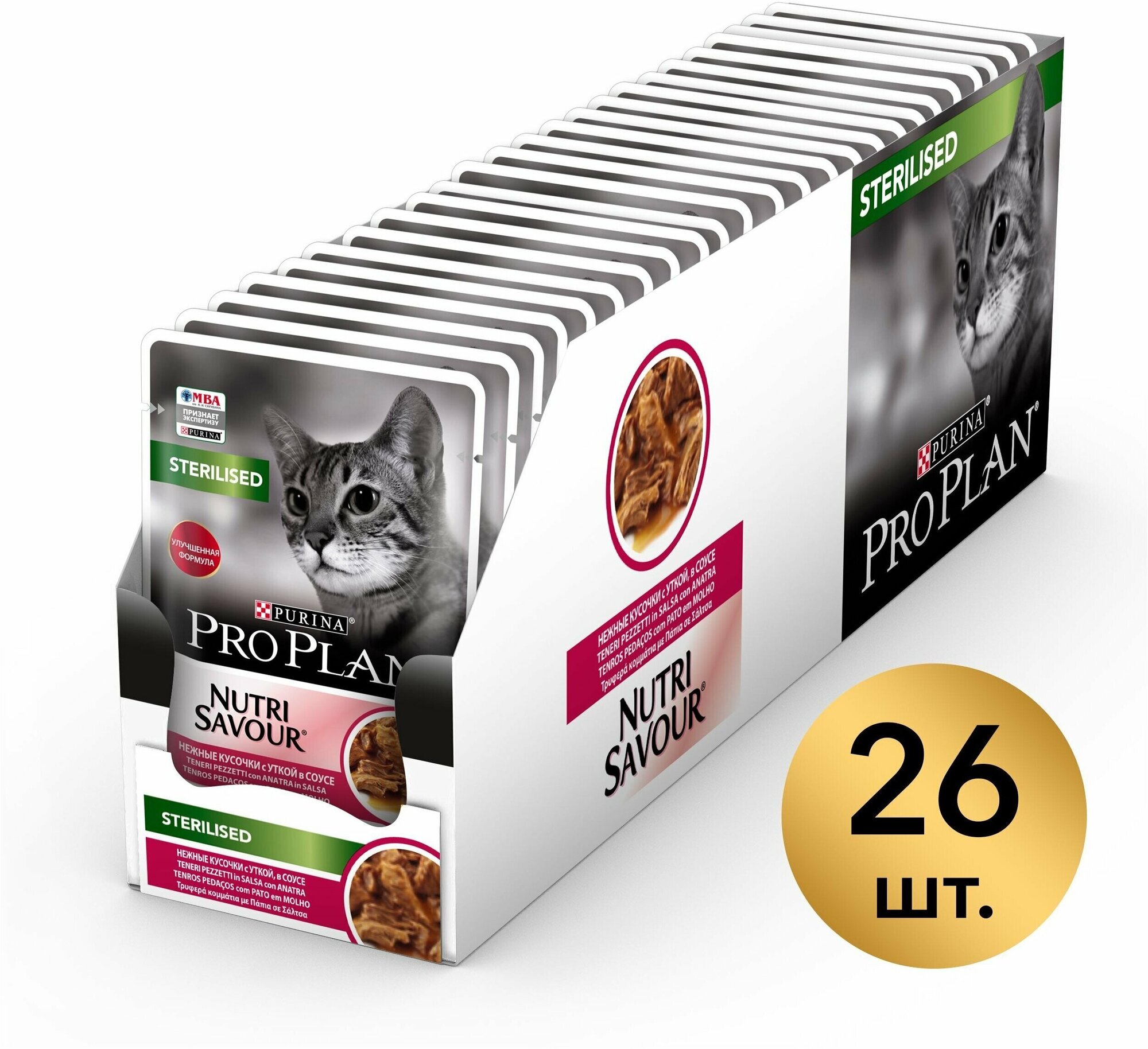 Влажный корм Pro Plan® Nutri Savour® для взрослых стерилизованных кошек и кастрированных котов, с уткой в соусе, 26 шт. по 85 г