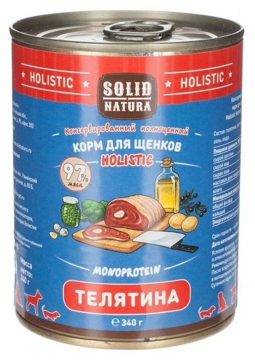SOLID NATURA HOLISTIC монобелковые для щенков всех пород с телятиной банка (340 гр)
