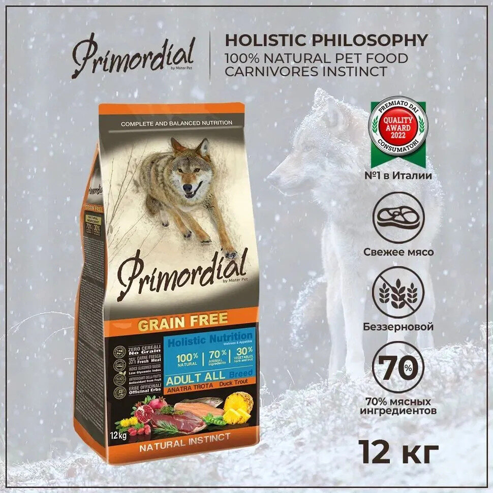 PRIMORDIAL ADULT ALL BREED беззерновой для взрослых собак всех пород с форелью и уткой (12 кг)