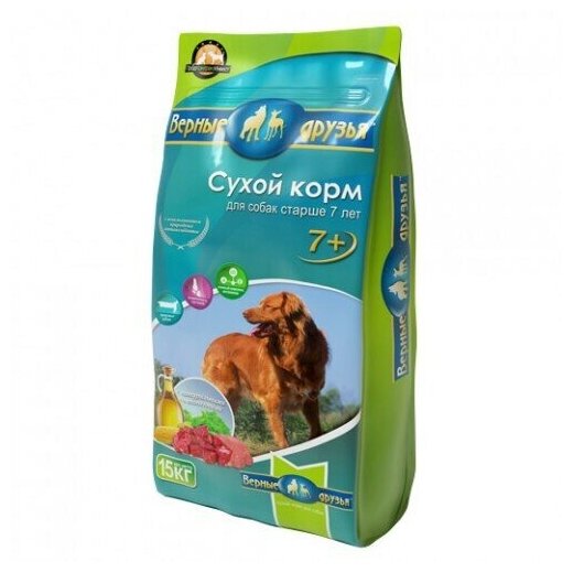 Купить Сухой полнорационный корм для взрослых собак старше 7 ЛЕТ Верные друзья, 15кг