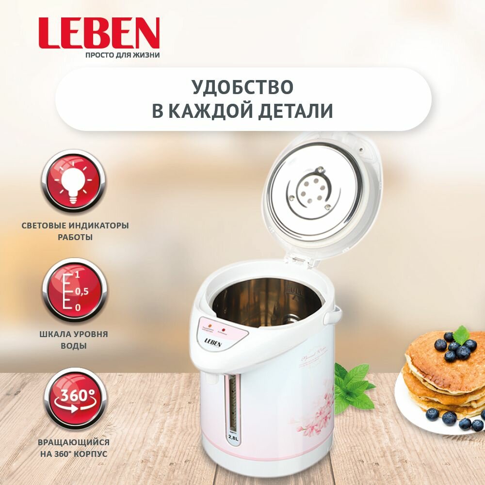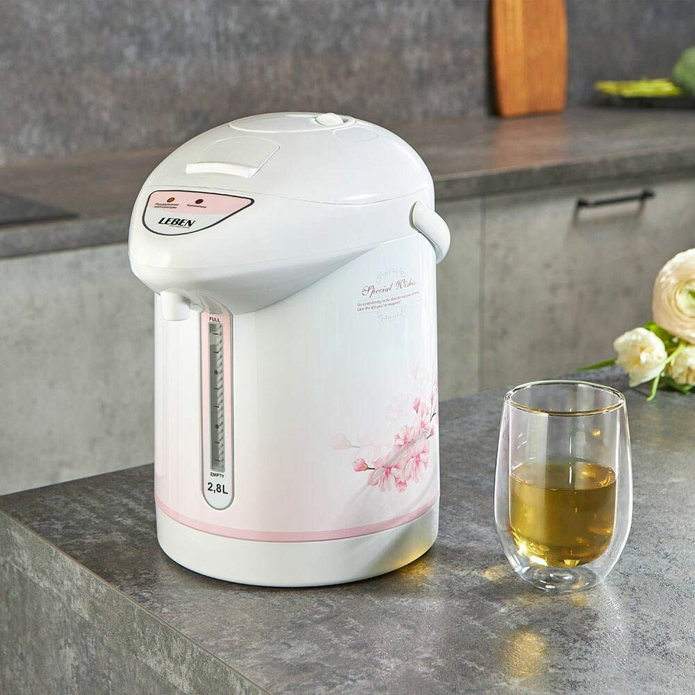Ниже Вы можете прочитать отзывы на LEBEN Чайник-термопот 2,8л, 750Вт, автоматич. поддержание температ., механич.помпа, ознакомится с подробными характеристиками, посмотреть интересные обзоры и фотографии на LEBEN Чайник-термопот 2,8л, 750Вт, автоматич. поддержание температ., механич.помпа.