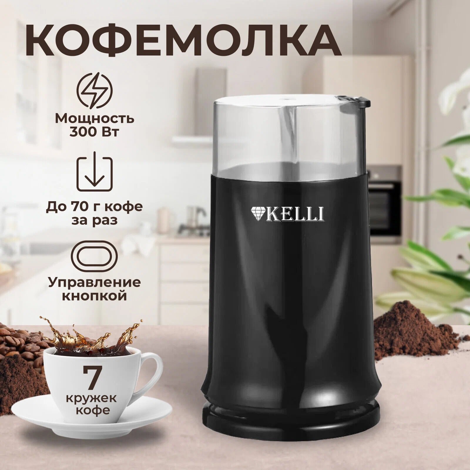 Кофемолка KELLI KL-5112, электрическая, ножевая, 300 Вт, 70 г, синяя