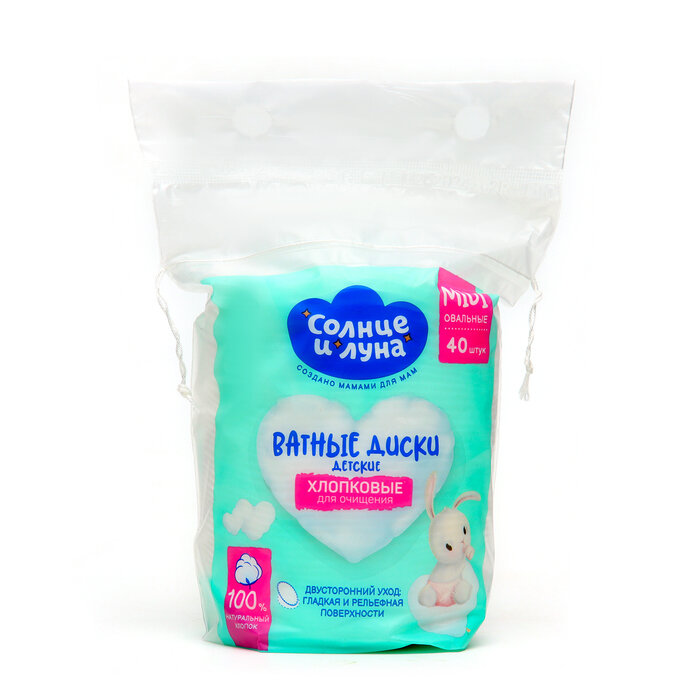 Ватные диски Солнце и Луна для детей двусторонние (овальные), 40 шт., пакет