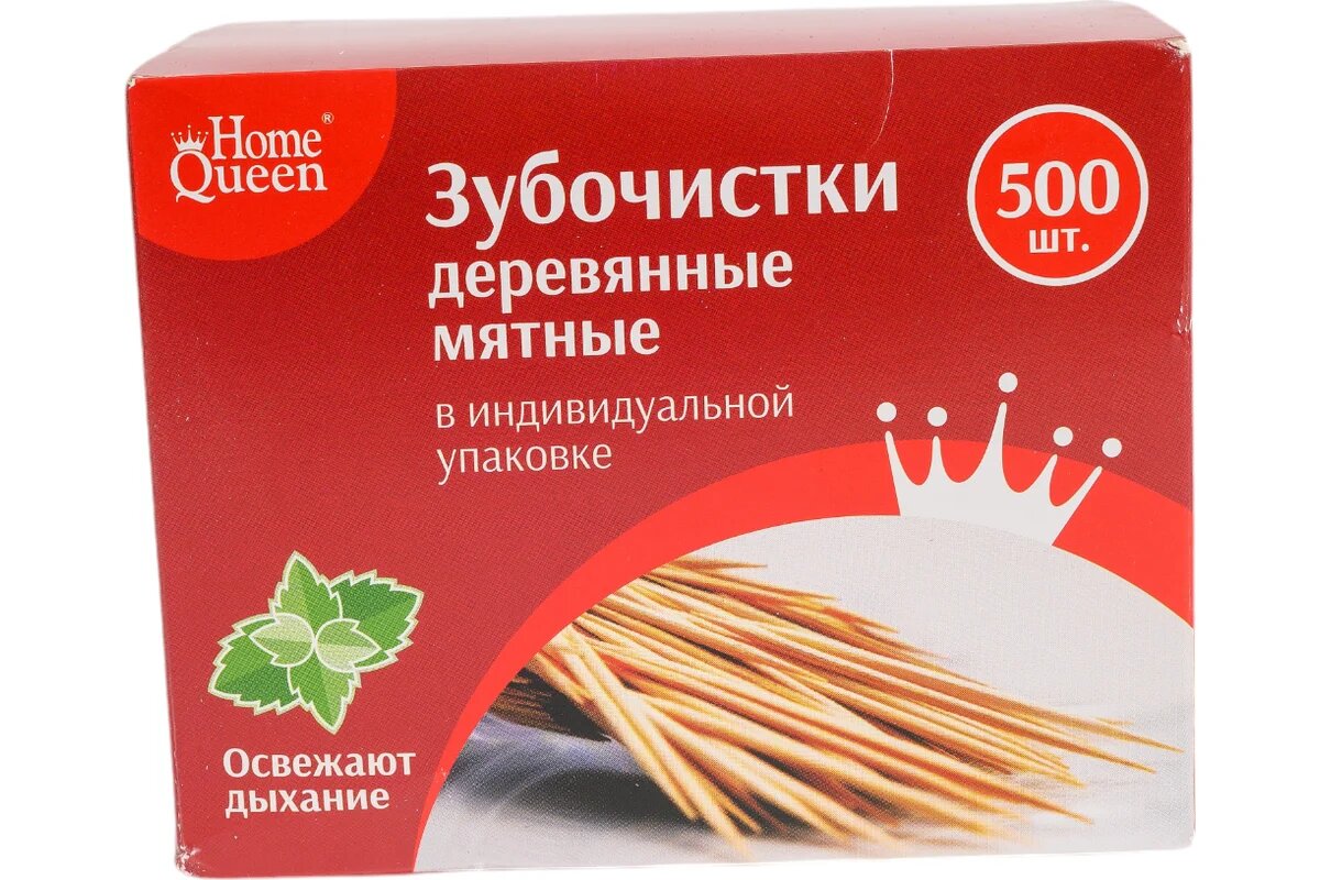 Home Queen Зубочистки деревянные мятные в индивидуальной упаковке 500 шт интересное: