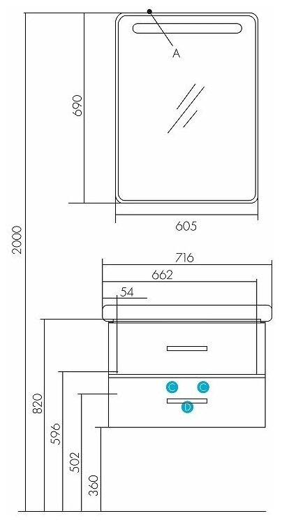Тумба без раковины (комод) AQUATON Америна 70, подвесной, 670х460х439 мм, черный