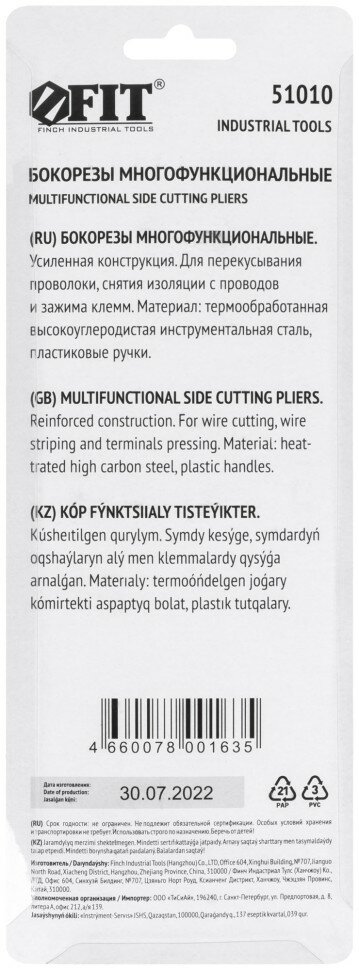 Бокорезы многофункциональные (снятие изоляции, пресс-клещи) 200мм | код 51010 | FIT (4шт.в упак.)