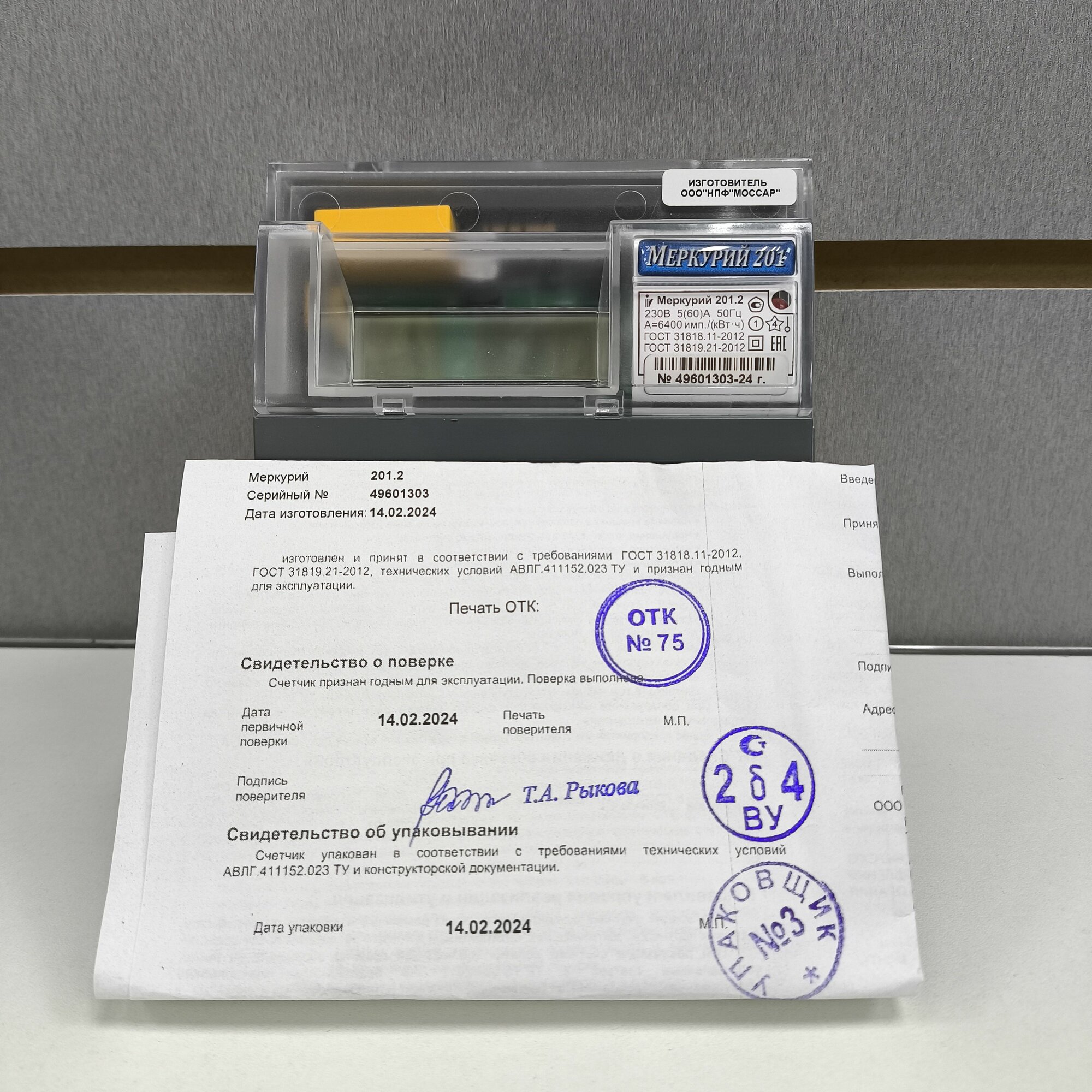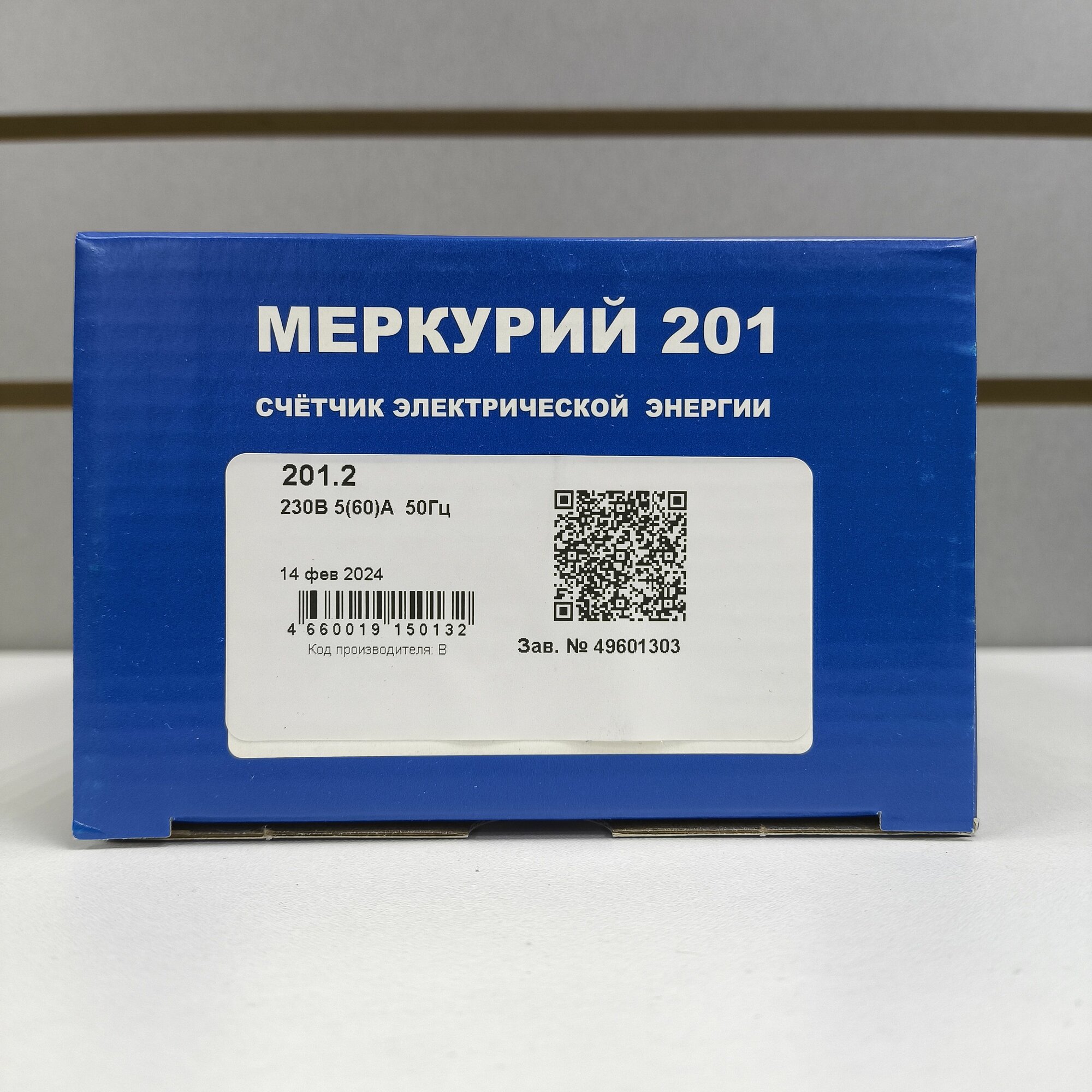 Счетчик электроэнергии Меркурий 201.2 однофазный однотарифный, 5(60), кл.точ. 1.0, D, ЖКИ, имп. выход, инкотекс 32416 (1 шт.)