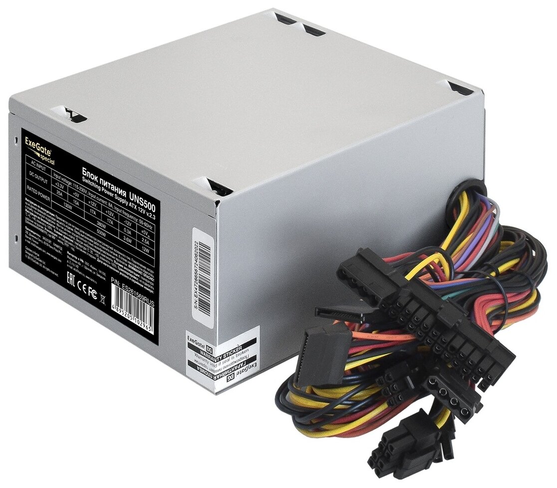 EXEGATE Блок питания Exegate ES261569RUS Блок питания 500W Exegate Special UNS500, ATX, 12cm fan, 24p+4p, 6/8p PCI-E, 3*SATA, 2*IDE, FDD