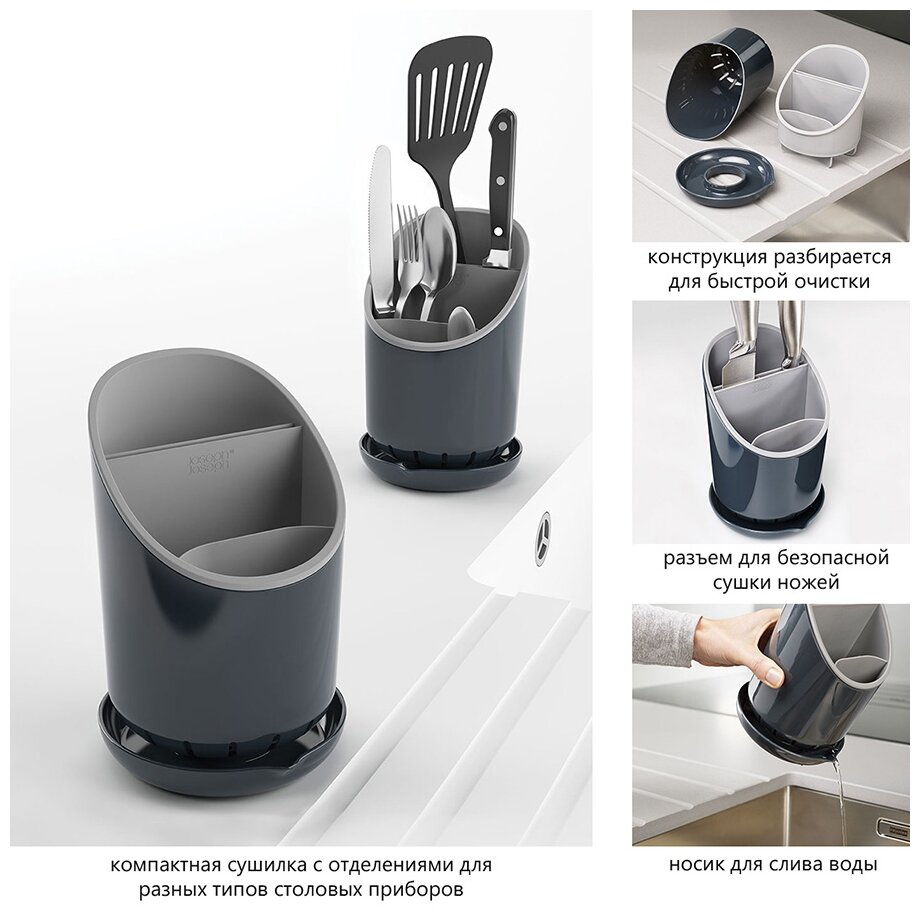 Joseph & Joseph Сушилка для столовых приборов со сливом Dock, 12х19х12.7см, серая 85075 Joseph & Joseph