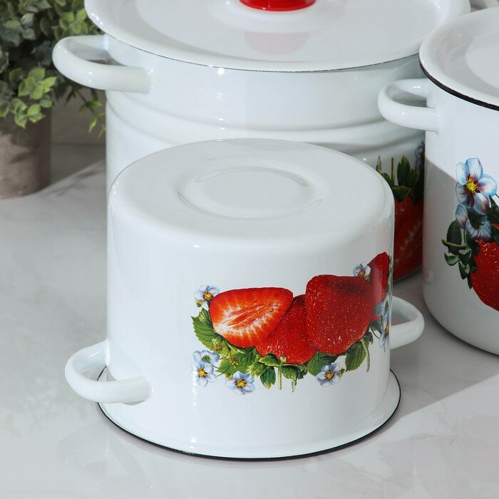 Сибирские товары Набор кастрюль «Клубника садовая», 3 предмета: 3,5 л, 5,5 л, 8 л, эмалированные крышки, индукция